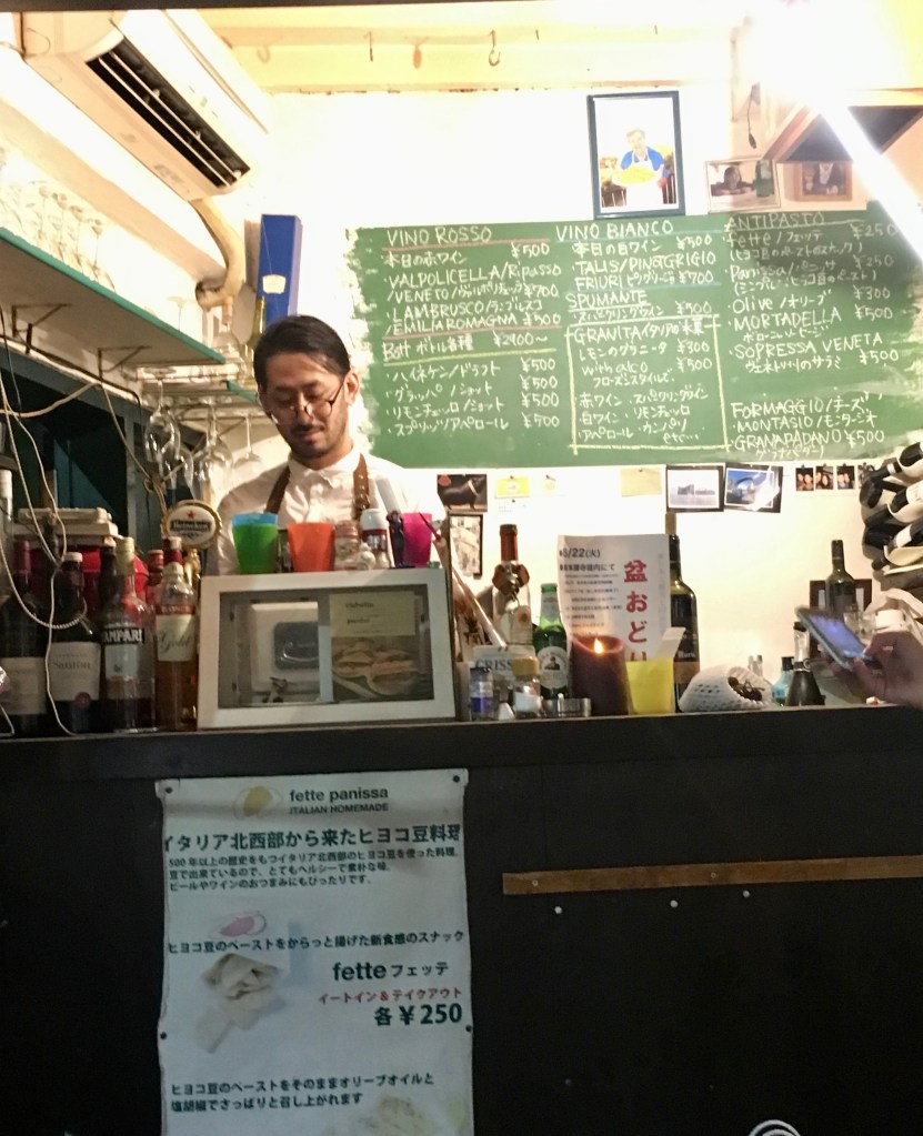 After a couple of minutes of walking we came across a tiny bar – more of a kiosk really. It was selling Prosecco and wine. There were a few chairs on the street in front of it and several people having a drink. It was perfect. We ordered wine from the young Japanese guy running the kiosk and settled ourselves amongst the seats. Within a minute a young woman came over to us and started chatting in fluent English.