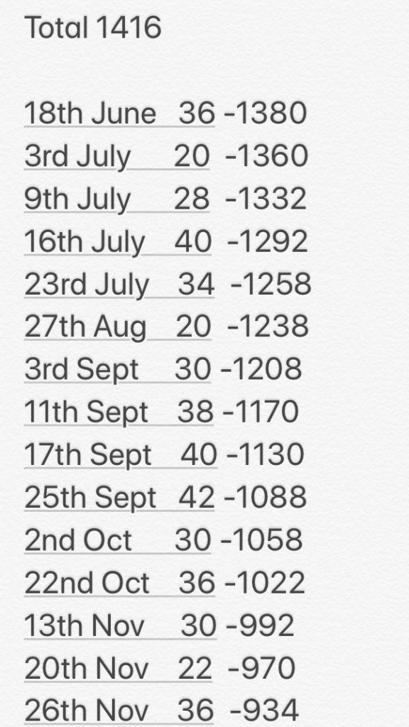 It took me months to finish the challenge of 1416 lengths, but I was so proud! Plus generous sponsors raised £370 for Aspire